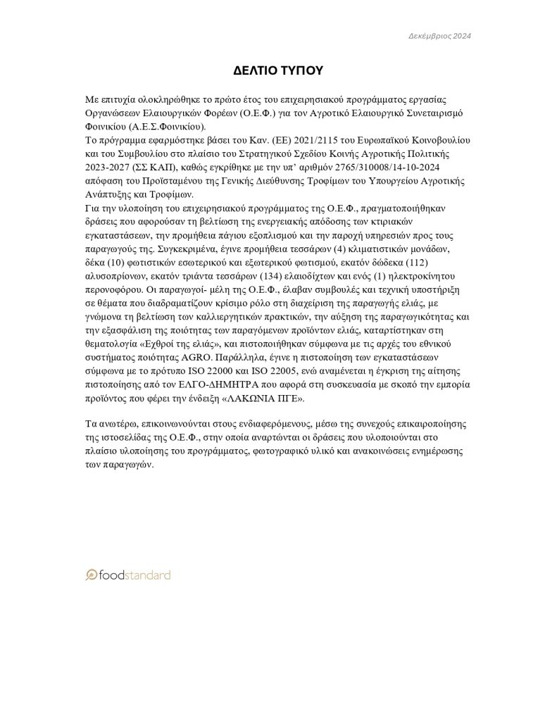Προμήθεια πάγιου εξοπλισμού σε παραγωγούς της παρέμβασης Π2-47.OL-1αxi